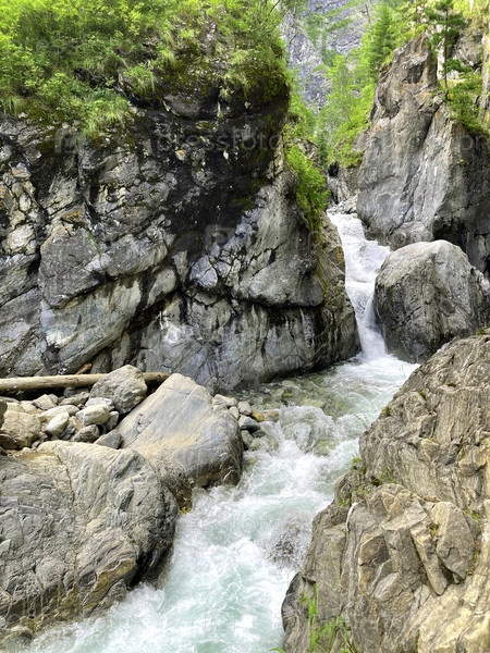 Бурный поток горной реки, несущейся среди скал, Бурятия, Россия