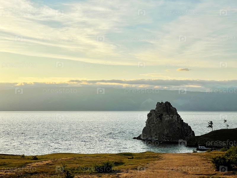 Скала Шаманка на острове Ольхон на закате, озеро Байкал, Россия