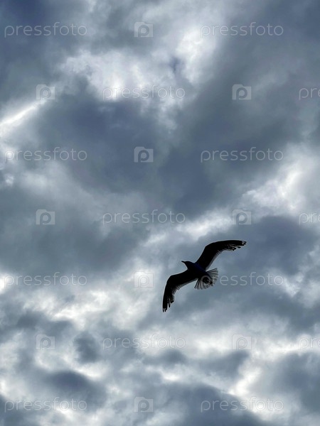 Силуэт чайки на фоне неба в облаках