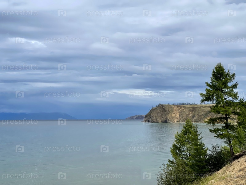 Красивый вид на озеро Байкал с легкой дымкой