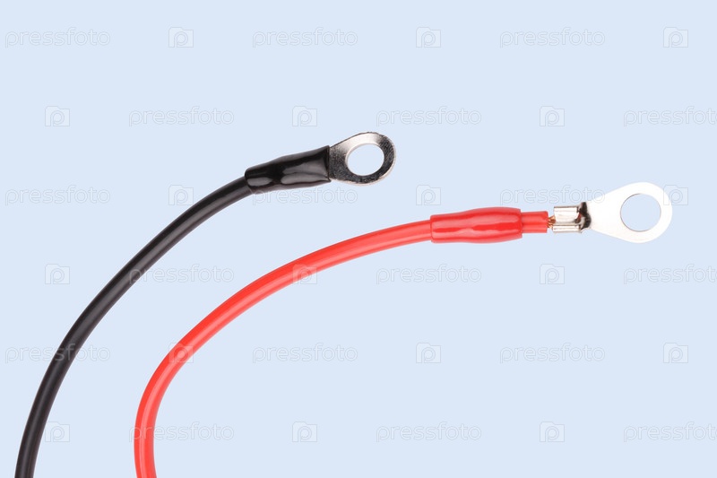 Два провода, красный и черный, изолированные на синем