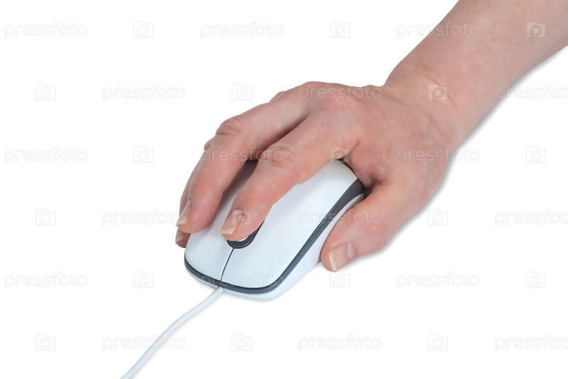 Рука с компьютерной мышью на белом фоне