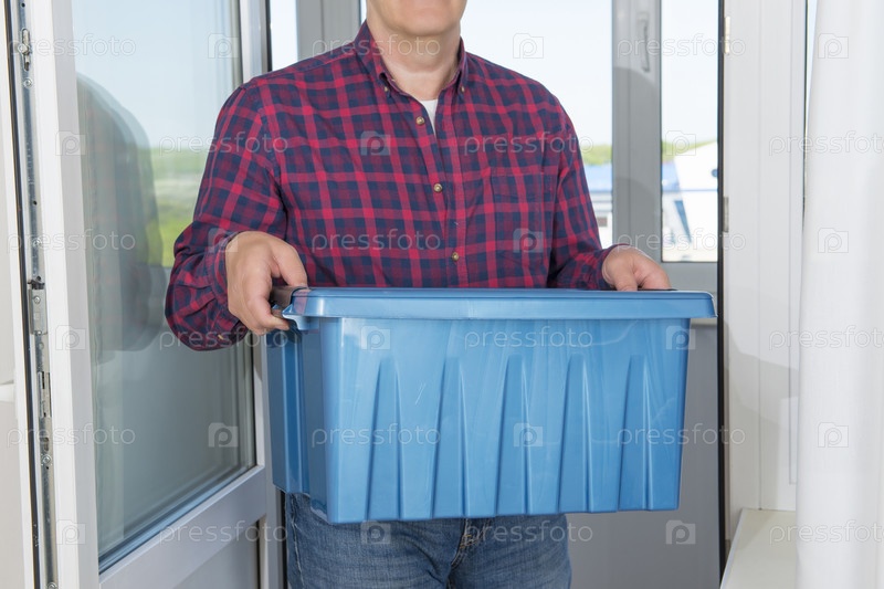 Контейнер для перевозки вещей в руках грузчика
