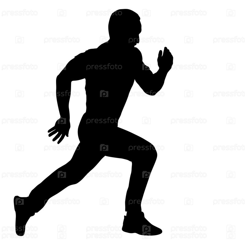 Черные силуэты бегунов на белом фоне