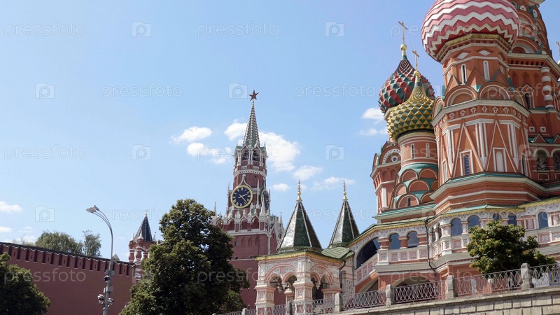 Москва Красная площадь. Собор Василия Блаженного и Спасская башня, Москва Красная площадь. Собор Василия Блаженного и Спасская башня
