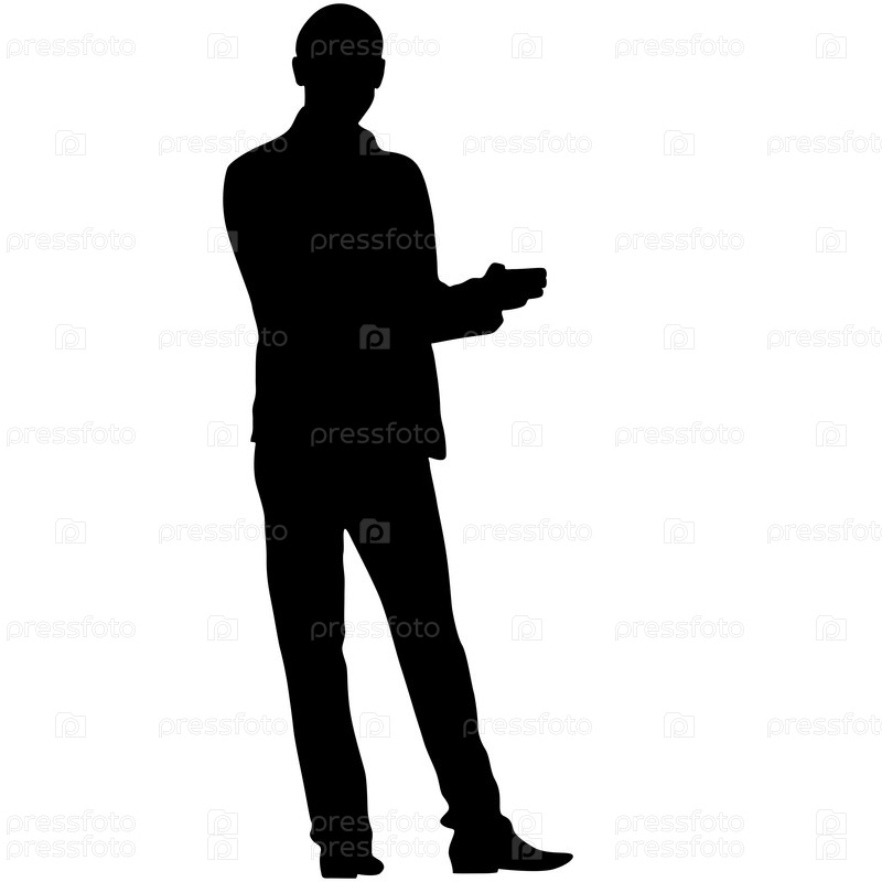 Мужчина стоит, положив руки вперед, силуэт на белом фоне