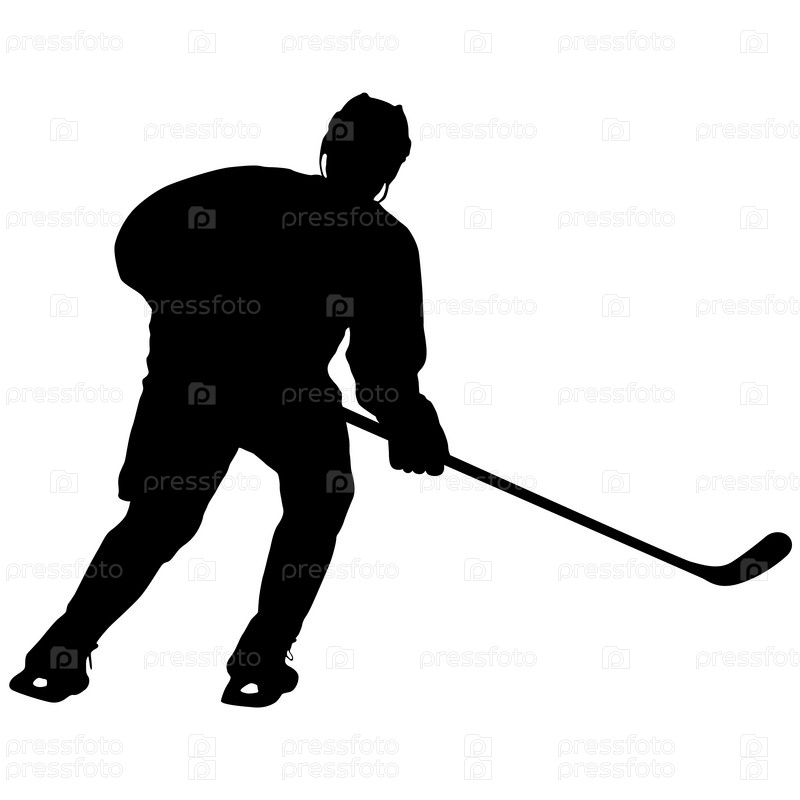 Силуэт хоккеиста. Изолированные на белом