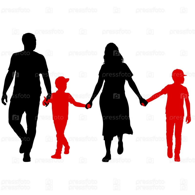 Силуэт счастливой семьи на белом фоне