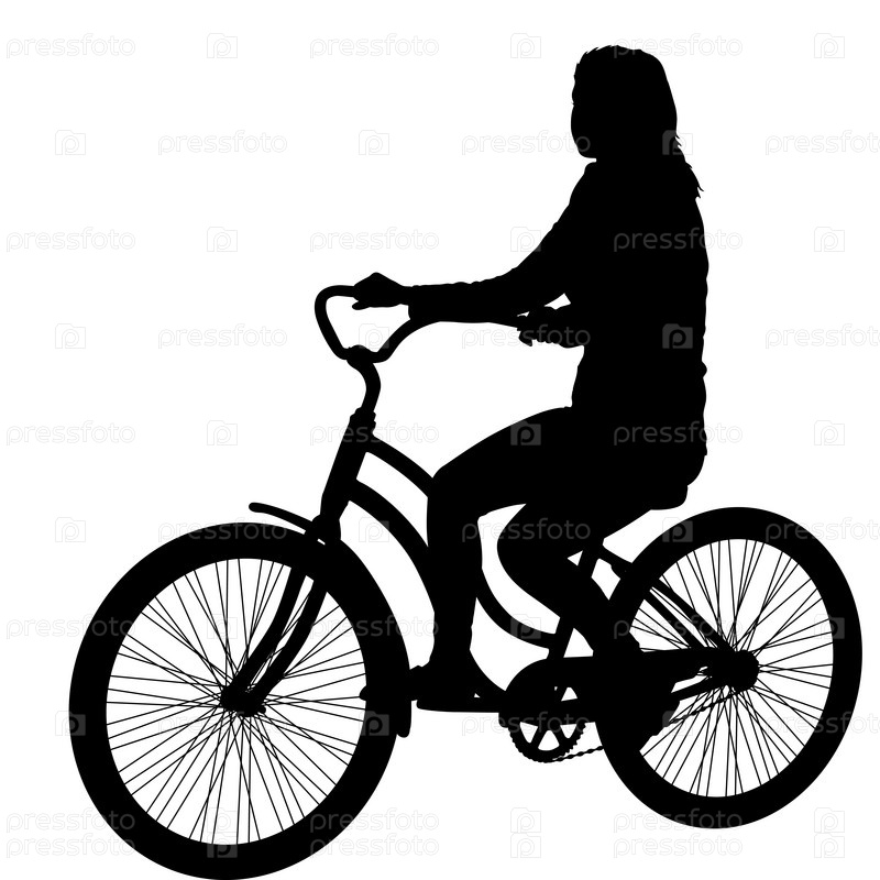 Силуэт велосипедистки на белом фоне