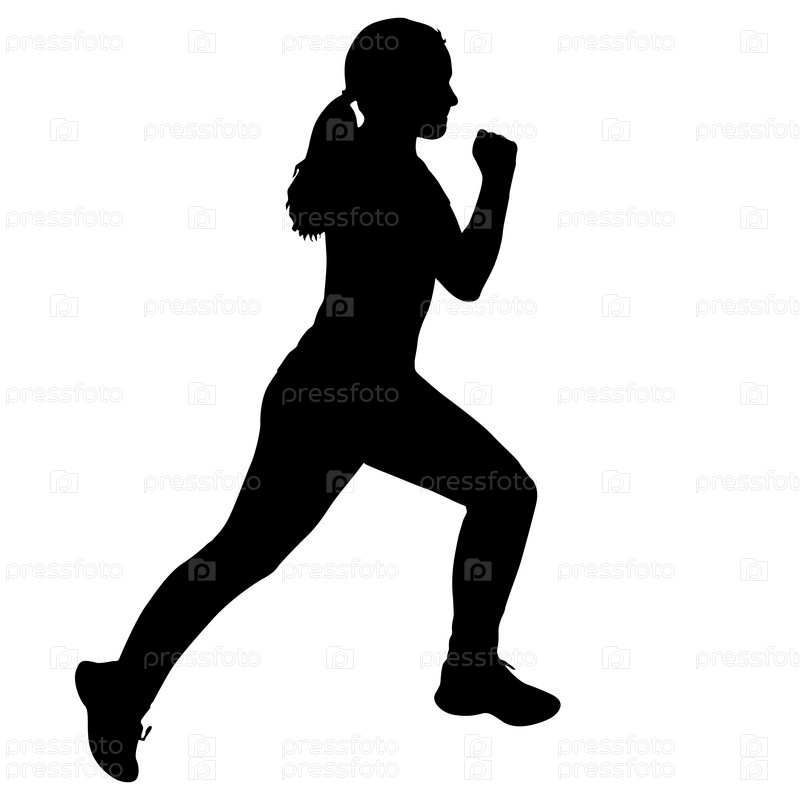 Черные силуэты бегунов спринтерских женщин на белом фоне