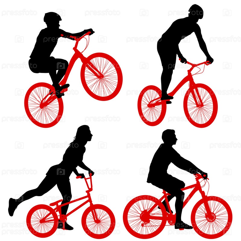 Установите силуэт спортивного велосипедиста на белом фоне