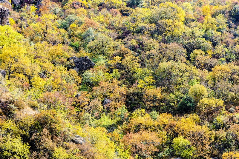 Заросшие красочные стены ущелья осенью