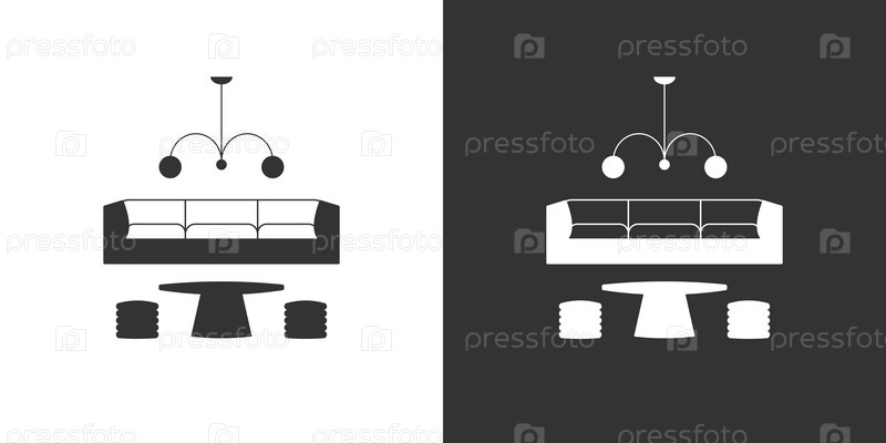 Мебель для гостиной. Плоская иконка. Черная и белая