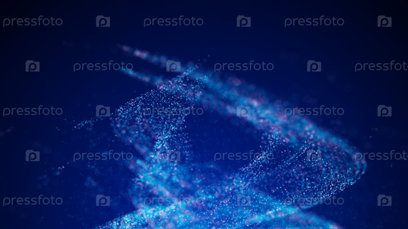 Вихрь пылевых частиц. Иллюстрация водоворота на синем фоне. Эффект левитации. Динамическая взрывная волна. Большие данные. 3D-рендеринг