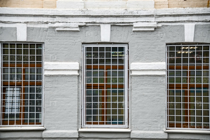 Окна с решетками на фасаде здания