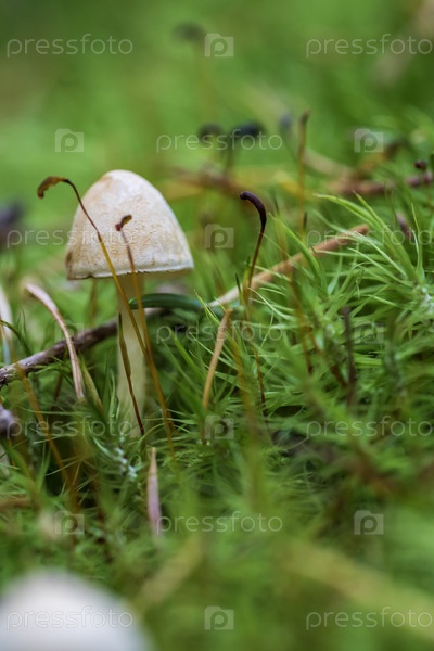 Маленькие грибы, растущие в лесу