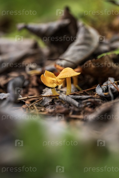 Маленький желтый гриб, растущий в лесу