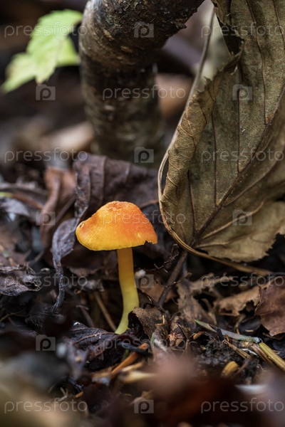 Маленький желтый гриб, растущий в лесу