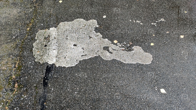 Белое пятно краски на тротуаре. Осенний дождливый день. На черном, мокром после дождя тротуаре старое большое пятно белой масляной краски. Пятно необычной формы