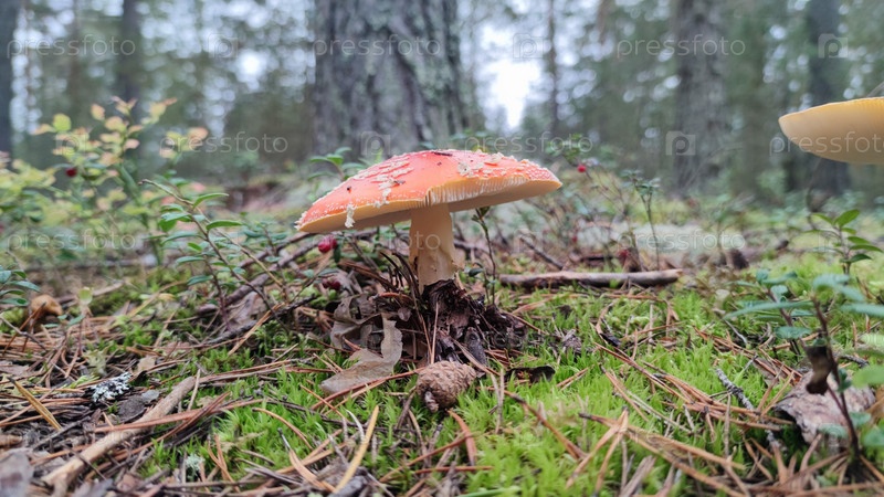 В лесу растет большой мухомор