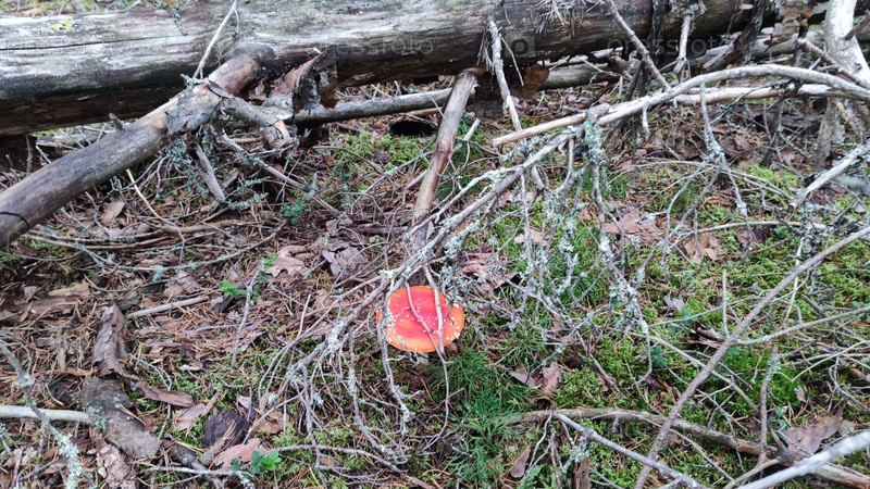 Небольшой мухомор среди мха