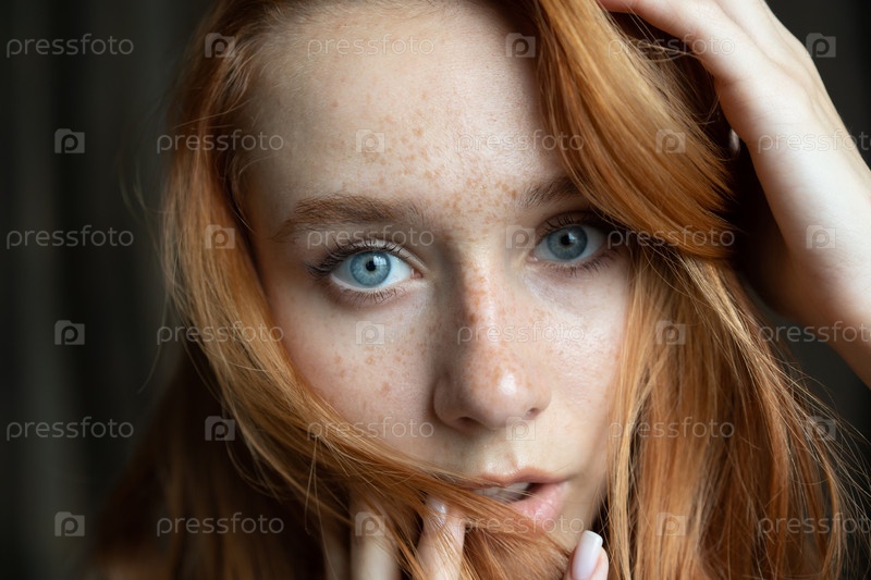 Портрет молодой красивой женщины с рыжими волосами в студии