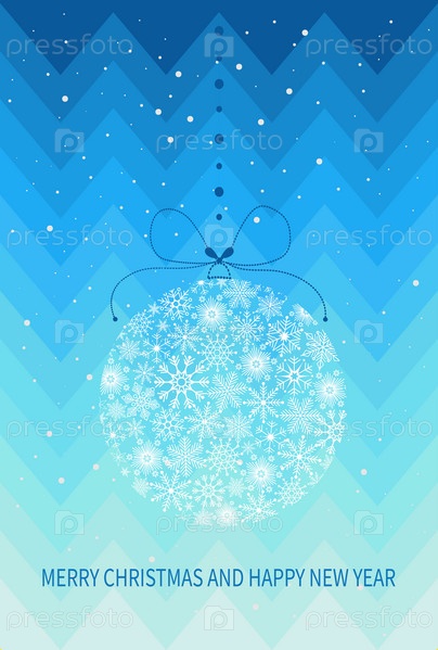 Праздничная рождественская открытка с елочным шаром из снежинок. Открытка с Рождеством и Новым годом. Векторная иллюстрация