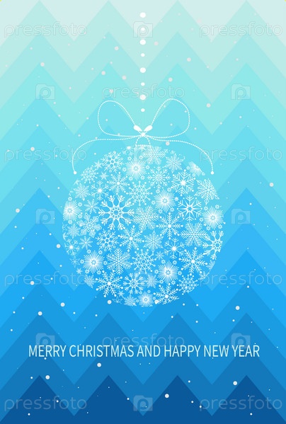 Праздничная рождественская открытка с елочным шаром из снежинок. Открытка с Рождеством и Новым годом. Векторная иллюстрация