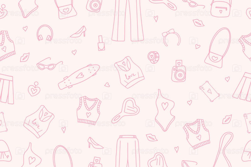 Бесшовные модные розовые узоры в стиле Барбикора. . Векторная иллюстрация