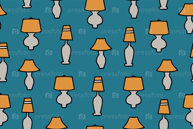 Бесшовный рисунок осветительных приборов для домашнего декора. Декоративная настольная лампа. Освещение для дизайна интерьера