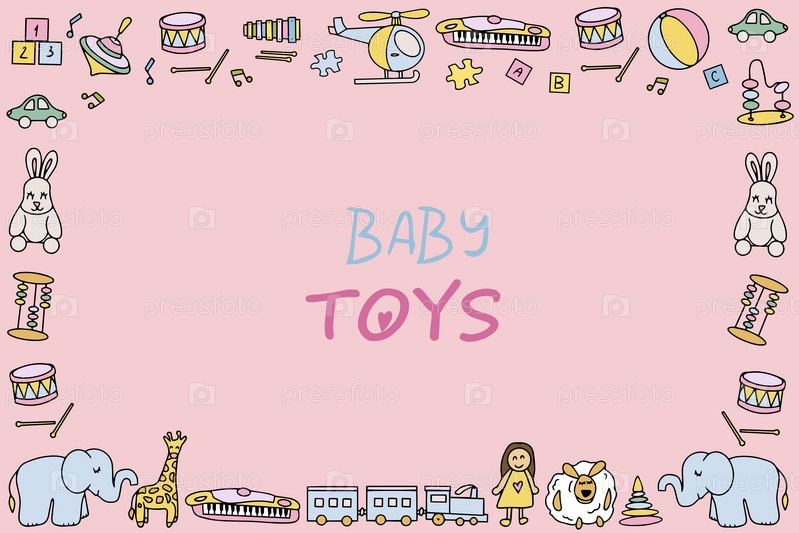 Фон из детских игрушек. Яркие игрушки в стиле каракулей. Векторная иллюстрация. Вектор