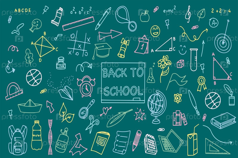 Фон школьных икон в стиле каракулей. Школьное образование. Снова в школу рисунок каракулей. Векторная иллюстрация