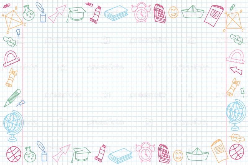Фон школьных икон в стиле каракулей. Школьное образование. Снова в школу рисунок каракулей. Векторная иллюстрация