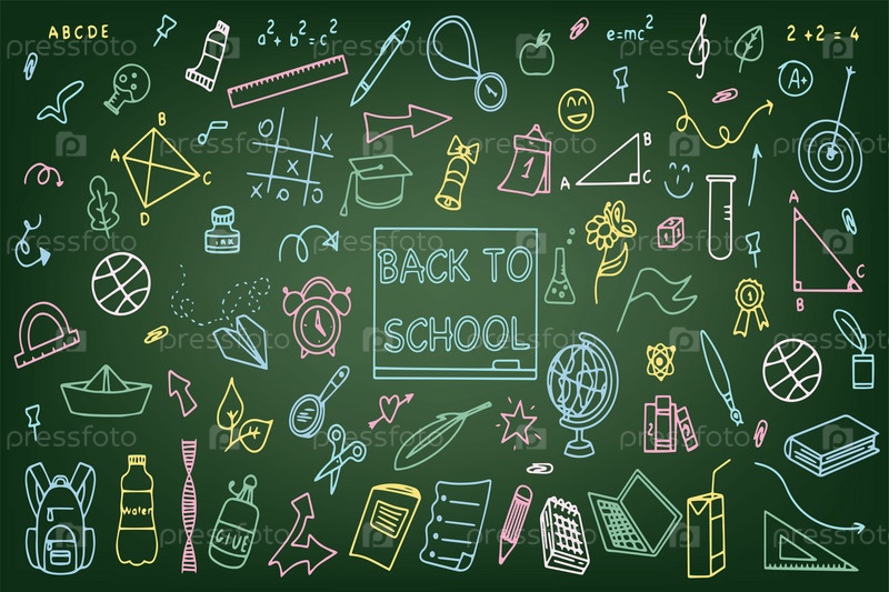 Фон школьных икон в стиле каракулей. Школьное образование. Снова в школу рисунок каракулей. Векторная иллюстрация