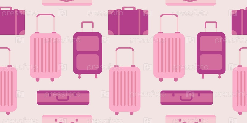 Бесшовный фон с багажом. Легендарный дорожный чемодан. Современный дизайн для печати на ткани, оберточной бумаге, упаковке. Векторная иллюстрация