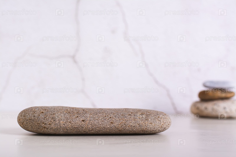 Узор гладкого плоского постамента из морского камня на столе