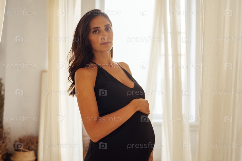 Студийный снимок молодой женщины, ожидающей ребенка