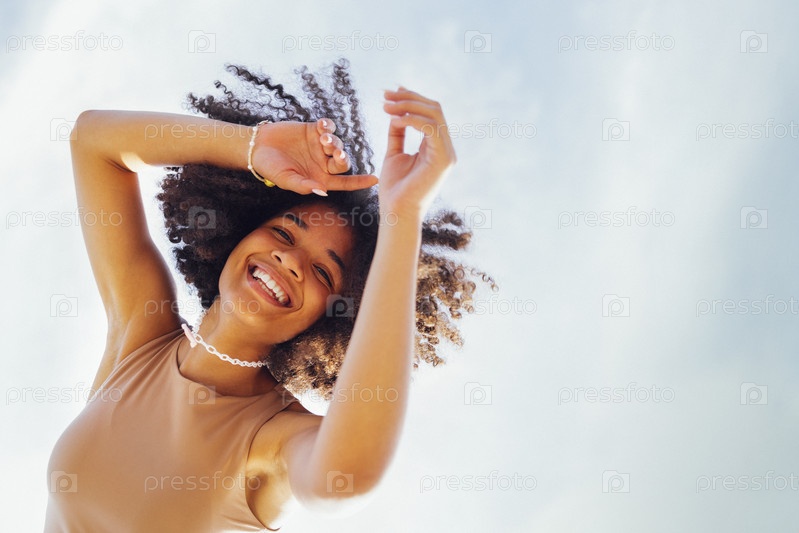 Крупный план портрета счастливой африканской американки-подростка, сладко улыбающейся в камеру