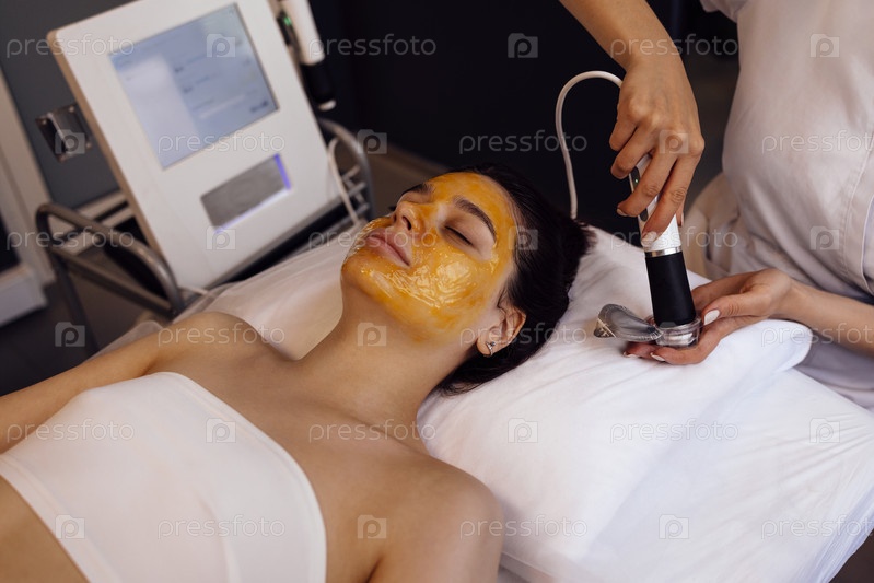 Женщина во время процедуры кислородной мезотерапии в салоне красоты