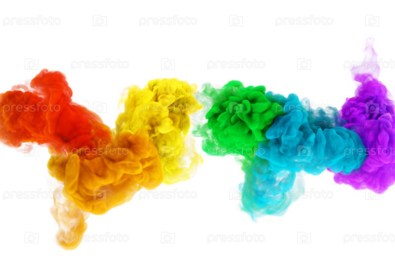 Фантазийные клубы дыма цвета радуги или волшебные облака на белом фоне