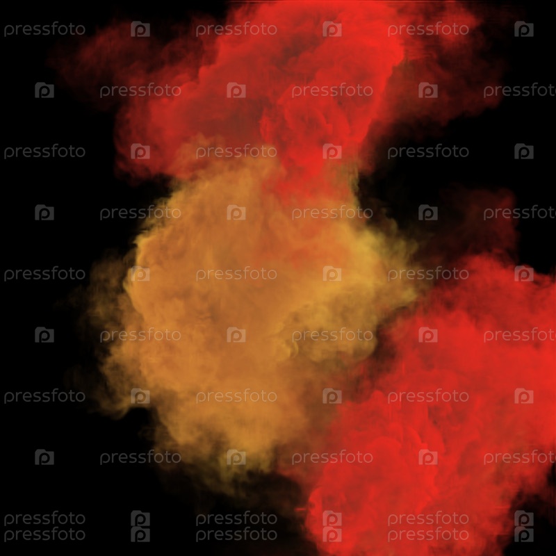 Красные и желтые клубы волшебного тумана и фантастической текстуры дыма