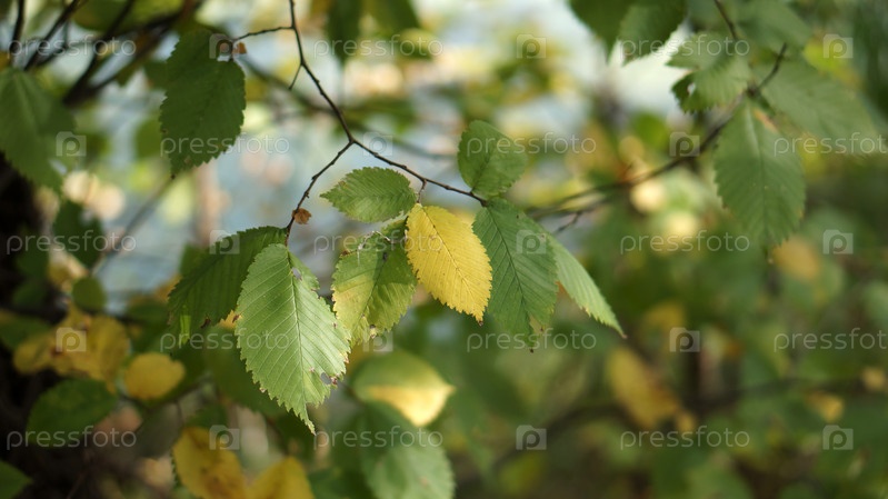 Листва зеленая и желтая