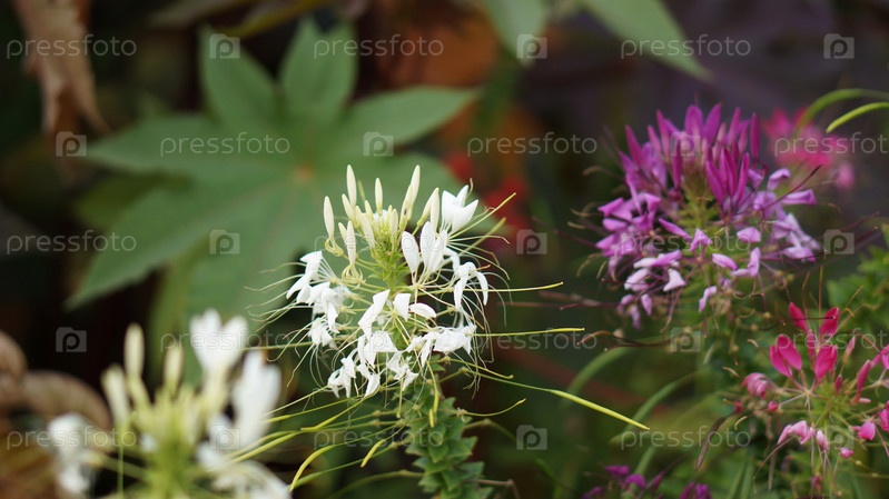 Бело-розовый цветок клеомы