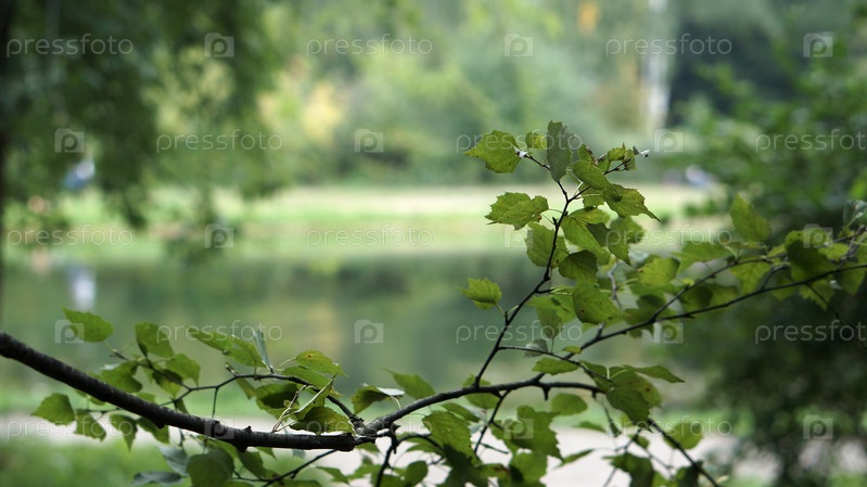 Зеленые листья и пруд в качестве фона