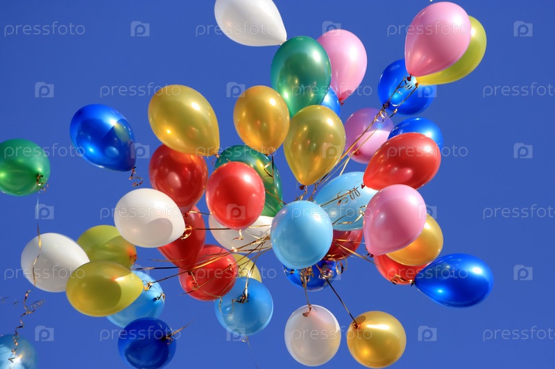 Много воздушных шаров в голубом небе
