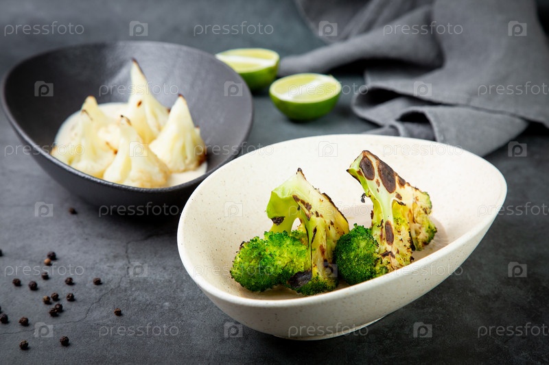 Вареная цветная капуста в грибном соусе с лаймом и брокколи