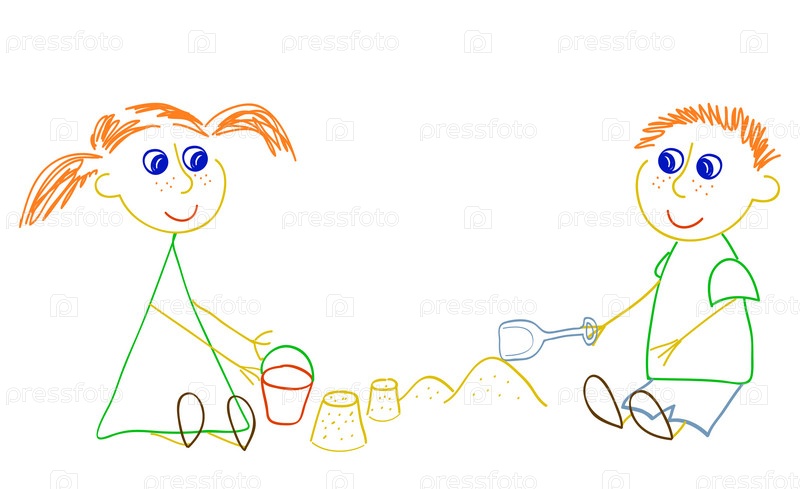 Девочка и мальчик играют в песочнице