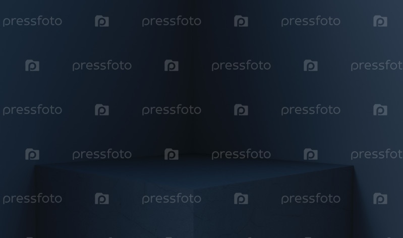 3D-рендеринг пустого пространства для демонстрации продукта. квадратный постамент, темно-синий фон