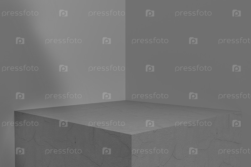 3D-рендеринг пустого пространства для демонстрации продукта. квадратный постамент, серый фон