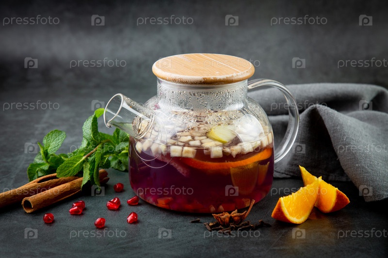 Горячий домашний чай с корицей, лимоном и мятой